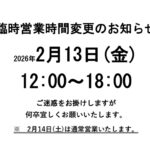 2026年2月8日 / 最終更新日時 : 2026年2月8日 鹿野裕治 お知らせ 絶賛営業中です! 本日はあいにくの天候ですが、当店は営業しております!日曜日なので18時までになりますが。もし、選挙投票などで外出の際には帰りにでもお立ち寄りください!お待ちしております!よろしくお願い申し上げます!