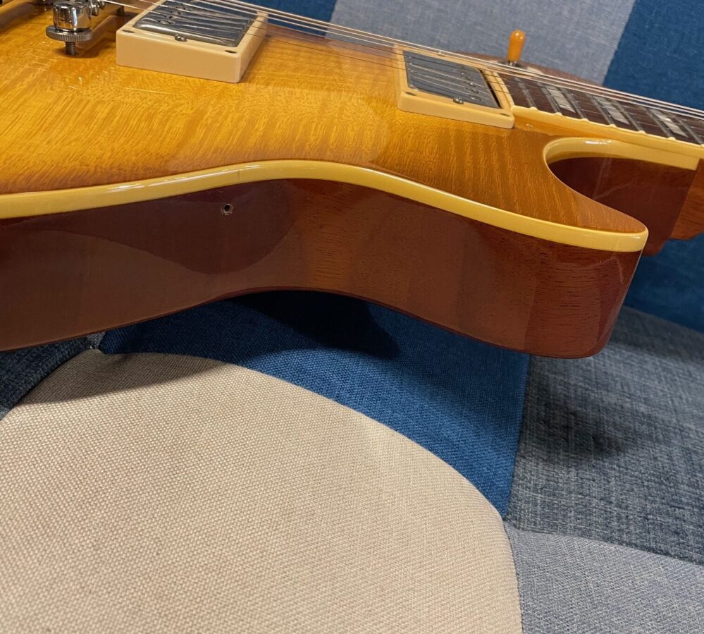 | 商品説明 Burny RLG-70 Honeyburst 1990年代 日本製 Burnyブランドのレスポールモデルタイプです。 1990年代の日本製! ボディはフレイムメイプルプライウッドトップ、マホガニーバック。ハニーバーストがとても綺麗です! ネックはマホガニーで指板はローズウッドです。 ピックアップはフェルナンデスのオリジナルで評判の良いVH-1。 ボディ裏、ネック裏に若干の傷、ハードウエアパーツにくすみがありますが、演奏に支障はなく、フレットの減りもほぼ無く、非常に状態の良い個体です。 当店での調整、メンテナンス済みです。 ジャパンヴィンテージをお探しの方、いかがでしょうか? ご注文をお待ちしております。 ・ピックガードは欠品しております。 ・トラスロッド・カバーは前オーナーによって変更されております。 ・当商品は委託品になりますのでセール対象外となります。 |